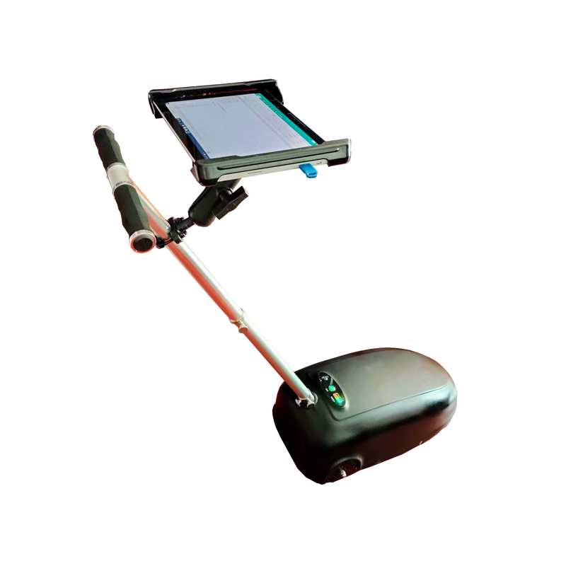 1, Mobil detektor dengan mendorong batang & bingkai penahan tablet.